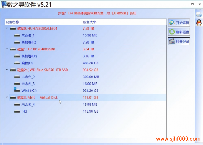 步骤1:先下载并解压程序运行后,直接双击需要恢复的分区.