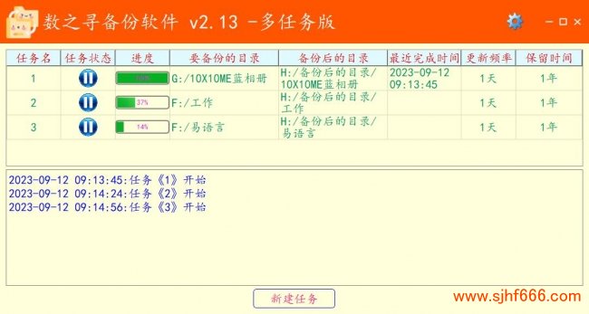 1.支持多任务同时备份文件 。
