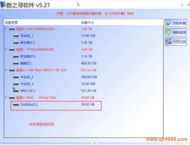 步骤1:先百度搜索并下载软件打开后,会在软件中看到电脑里所有的盘,然后直接双击需要恢复的分区.