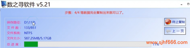 步骤4:等软件将数据拷贝完成就好了 (软件恢复的速度和电脑复制文件的速度一样,主要看恢复的盘的读取速度)