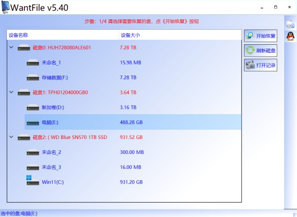 根据需要恢复的分区或磁盘,再点开始恢复第二步:扫描数据