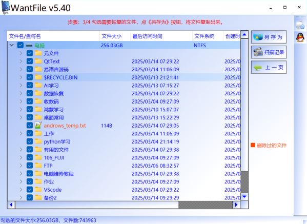 勾选需要恢复的数据,点击另存为即可强大数据恢复能力,多种设备快速恢复
